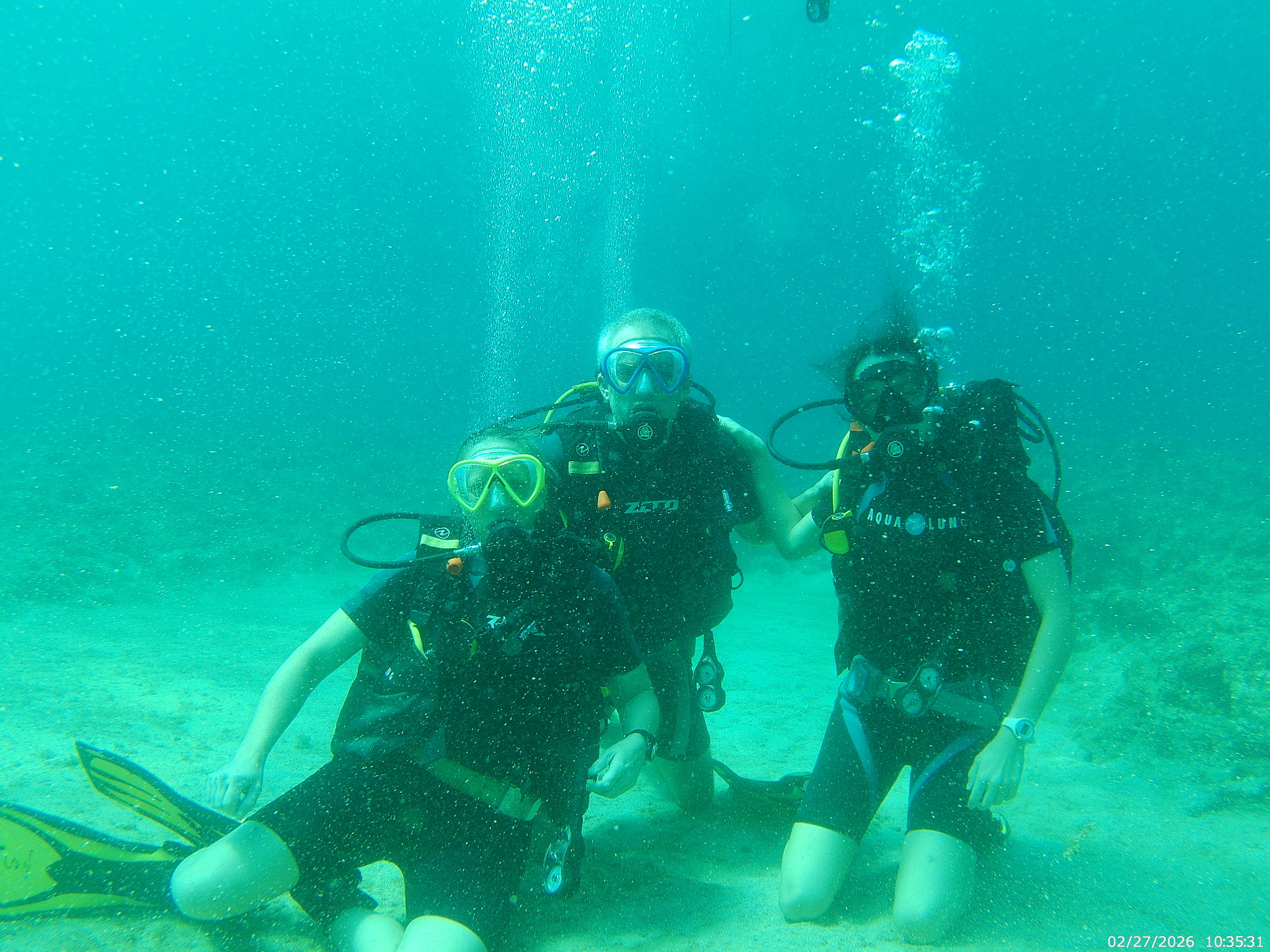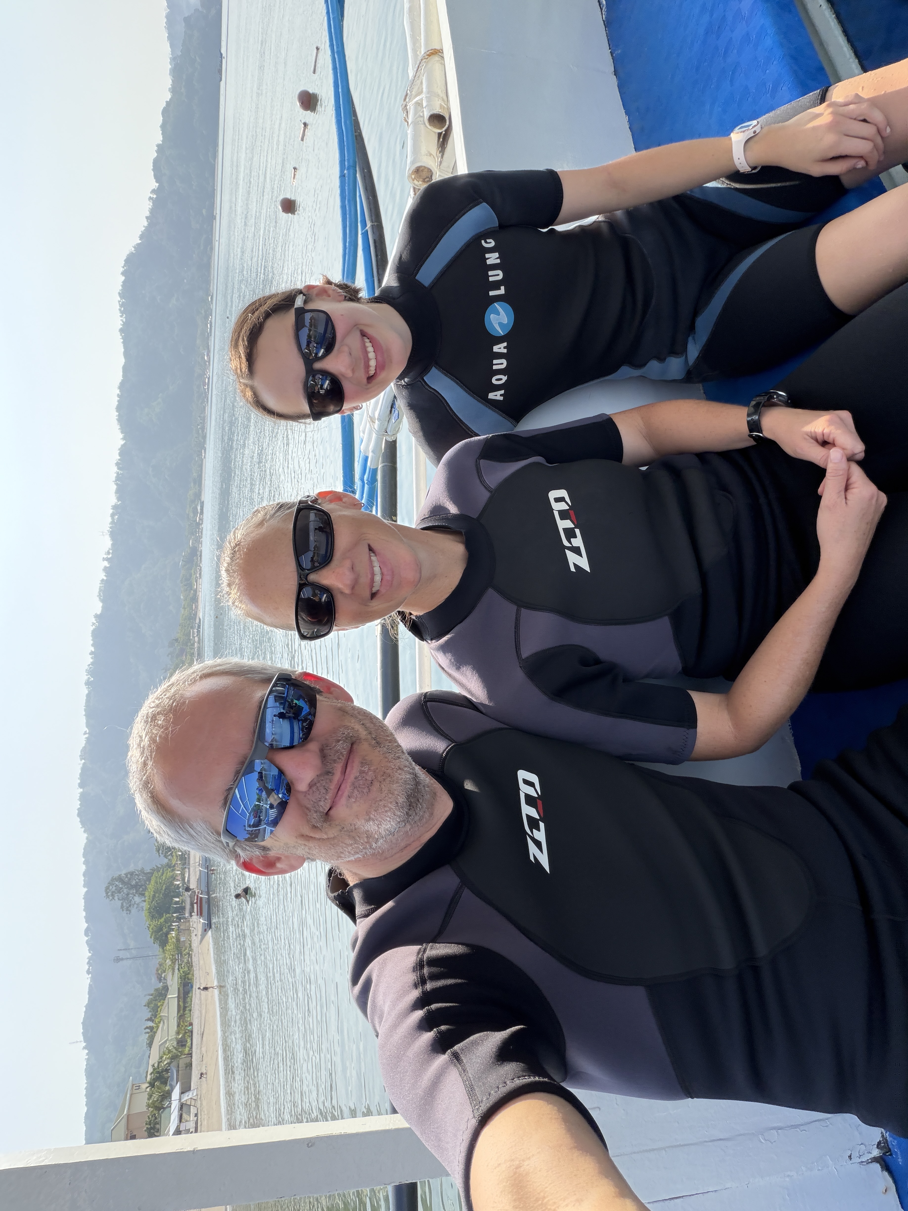 We had some fantastic guides, and they decided that instead of training in the pool, we would just go ahead and train at the beginning of our dive. We went down about 15 feet (lots of ear clearing to get down), did our training bit, and then had a dive. I’ll be honest – I was not super comfortable down there. I *may have been biding my time until it was finally over, but at least I didn’t panic this time, and feel proud of staying down there for 35 min and conquering my fear. We came back to the boat and Gavin and Morgan happily said yes to a 2nd dive. I was perfectly content to snorkel around a bit and sit on the boat drinking coffee while they went down. 😊 It was a fantastic day.